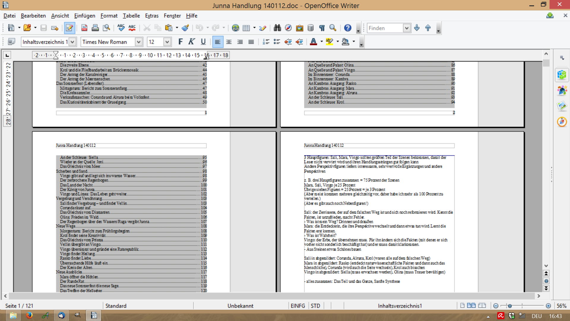 Mit einer speziellen Schreibsoftware geht es um Längen besser – mit dieser hier kann man zum Beispiel auch Zeitleisten abbilden. Das ist einen eigenen Blogeintrag wert, kommt später!
