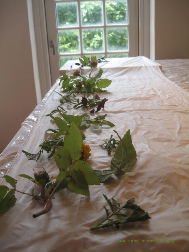 Ecoprint Pflanzendruck Emilielunden Seidenschal Rosenblätter Blüten Tagetes Eukalyptus 176 27/06/201727/06/2017 / Carmen Wedeland - inselauszeit.blog
