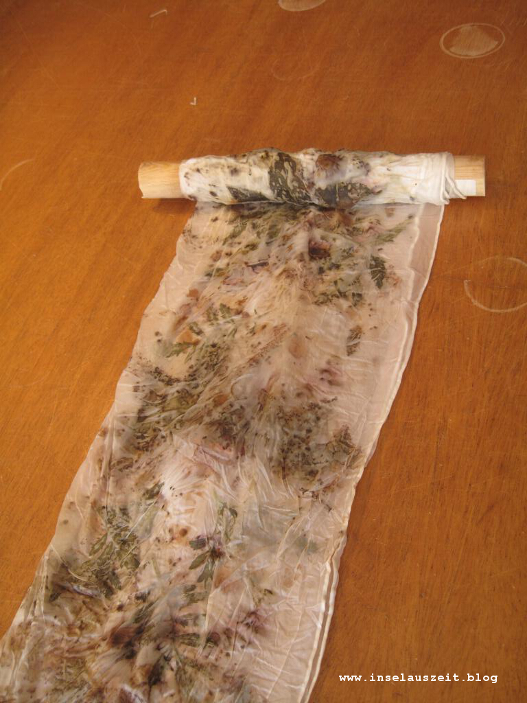 Ecoprint Pflanzendruck Emilielunden Seidenschal Rosenblätter Blüten Tagetes Eukalyptus 228 27/06/201727/06/2017 / Carmen Wedeland - inselauszeit.blog
