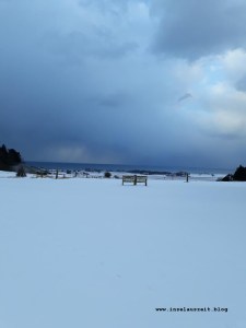 Winterbilder aus Dänemark Insel Møn Bank im Schnee mit Ausblick auf Ostsee 09/06/2018 / Carmen Wedeland - inselauszeit.blog